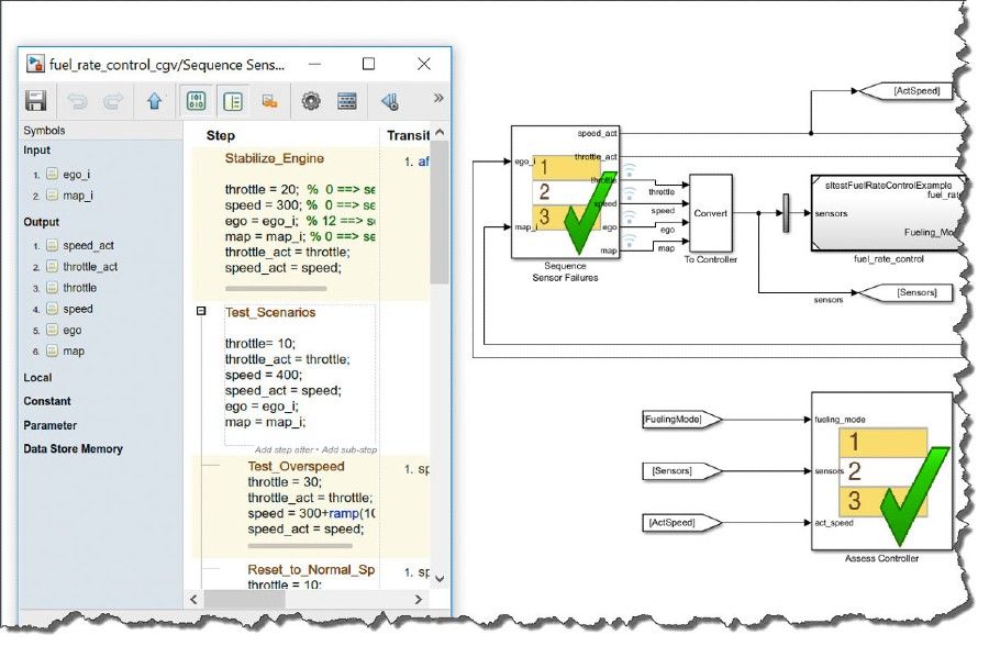 Figure 4. Simulink Test sequence and assessment blocks for modeling and authoring complex test scenarios.